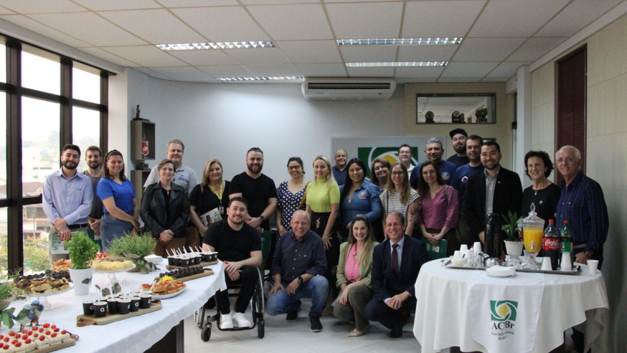 Nesta quarta-feira, 25 de setembro, a Associação Empresarial de Brusque, Guabiruba e Botuverá (ACIBr), promoveu um café da manhã para os novos associados. Na ocasião, os empresários foram recepcionados pelo presidente, Marlon Sassi; o assessor jurídico, Osmar Peron Junior; a diretora de Núcleos, Daiane Rossano e os colaboradores da entidade. Durante o encontro foi apresentado um pouco sobre a história, benefícios e ações desenvolvidas, com ênfase na representatividade dos Núcleos Setoriais.