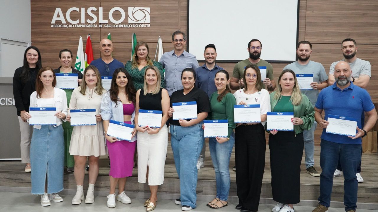 No dia 26 de outubro, no auditório, a Associação Empresarial e Cultural de São Lourenço do Oeste (Acislo) certificou a primeira turma de empresários, gestores e líderes no Programa de Desenvolvimento de Gestores (PDG). Realizado em parceria com a Uno Chapecó, a formação buscou atender demandas específicas dos gestores locais, proporcionando uma formação de alto nível com um corpo docente composto por especialistas. Os professores, mestres e doutores, trouxeram conhecimentos que cobrem desde liderança e gestão de equipes até planejamento estratégico e análise econômica financeira.
