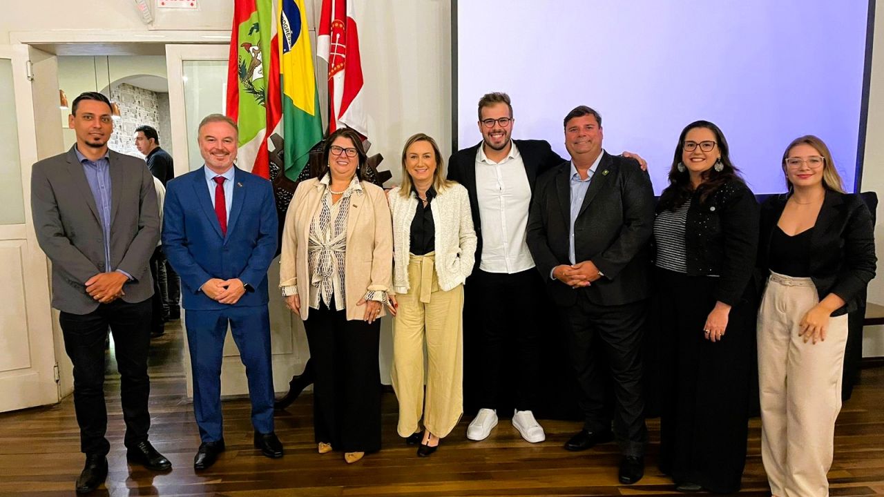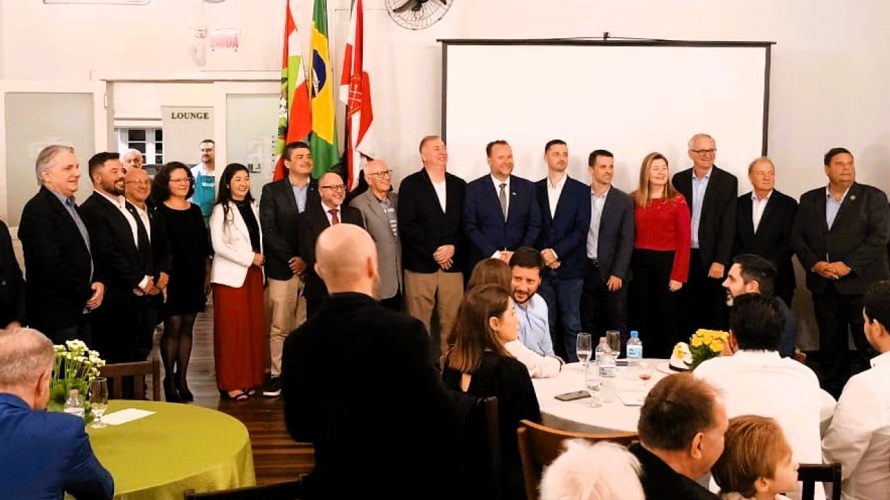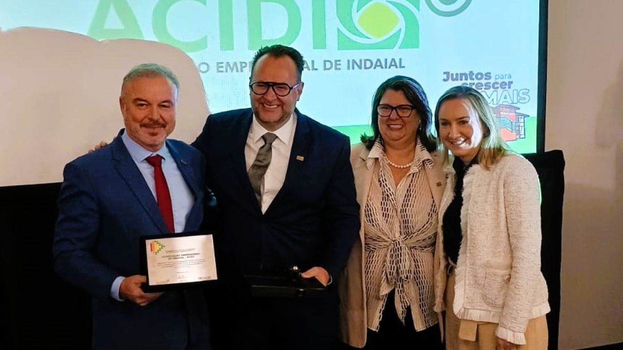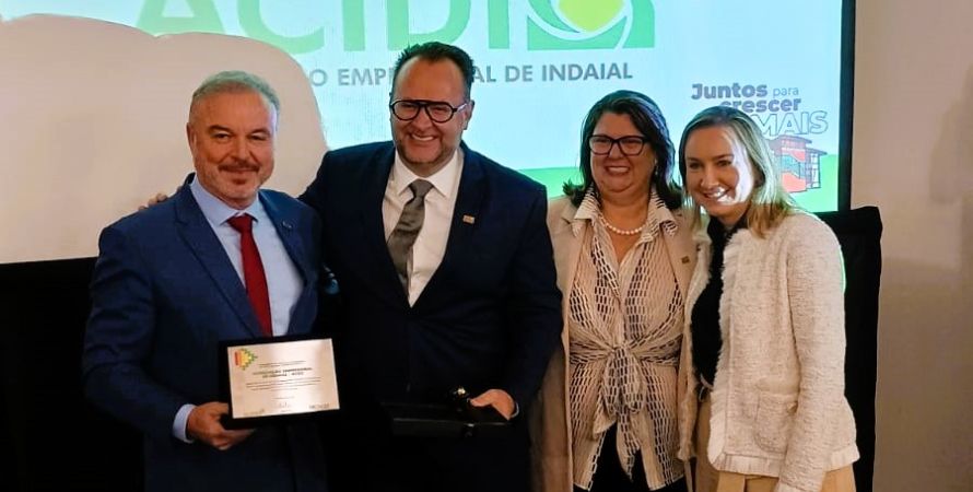 A vice-presidente da Federação das Associações Empresariais de Santa Catarina (FACISC), Rita Conti, e o vice-presidente da FACISC na região do Vale, Rinaldo Araújo, representaram a entidade no evento em celebração aos 35 anos da Associação Empresarial de Indaial (ACIDI), na noite desta quarta-feira (22). A cerimônia também marcou a posse da nova diretoria da entidade, presidida por Marcondes Aurélio Moser. Quem deixou o cargo foi o empresário Rogério Isnar Patrício.