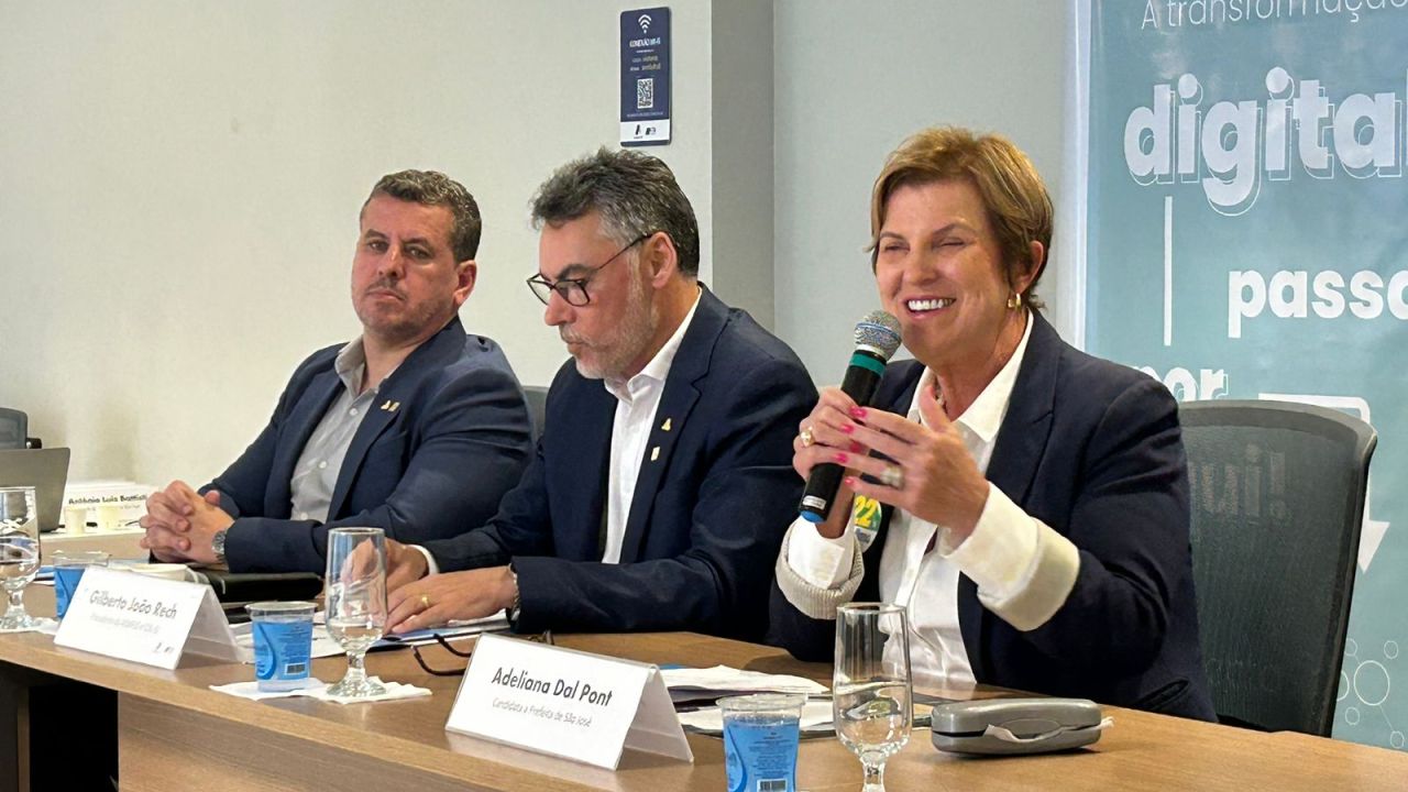 A candidata Adeliana Dal Pont do PL foi a primeira candidata a receber a cartilha Voz Única da AEMFLO e da CDL de São José. Ela disse que as propostas das entidades estão em muito alinhadas com as suas propostas. “A AEMFLO e CDL sempre se posicionam em favor da cidade de São José”. Entre os pontos destacados da cartilha por Adeliana, a Zona Azul foi ressaltado, pois segundo na sua visão, l precisa ser repensado para atender as necessidades, tanto dos moradores como das empresas.