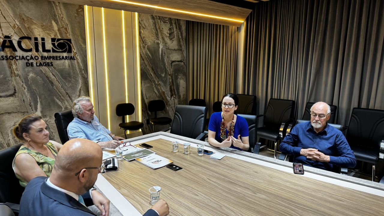 Os empresários da Associação Empresarial de Lages receberam na reunião desta segunda-feira, 11 de novembro, a secretária Municipal de Águas e Saneamento – SEMASA, Taíse Paeze, o engenheiro civil Ricardo Fontana Sirtoli e a engenheira ambiental e sanitarista, Liandra sartor da Silva, e o diretor Salomão Silva Junior.