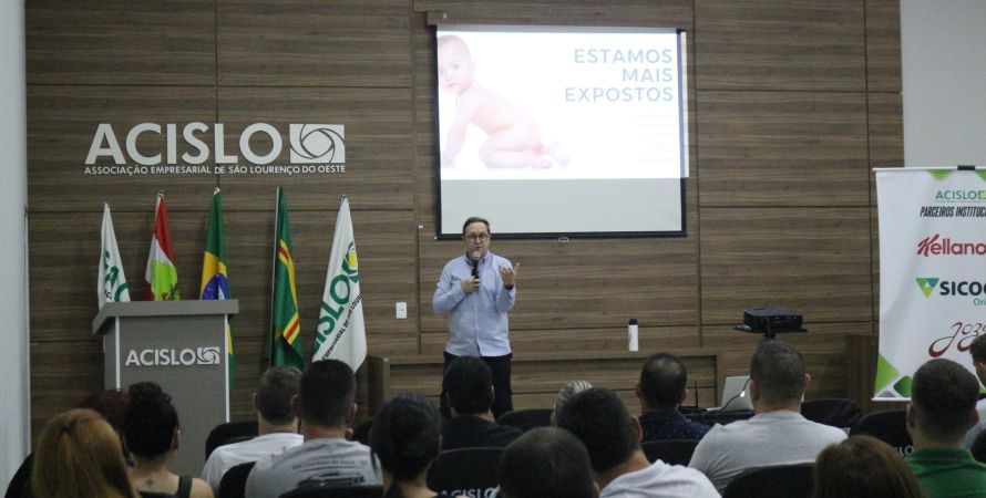 Na noite da última terça-feira (19), a Associação Empresarial e Cultural de São Lourenço do Oeste (Acislo) recebeu o especialista em gestão de marca pessoal e profissional, Vagner Dalbosco, para uma palestra gratuita que reuniu empresários, gestores e líderes locais. O evento, que teve como tema “O impacto da sua marca pessoal na carreira e nos negócios”, faz parte do cronograma de eventos promovidos pela Acislo para fortalecer o empresariado rumo a 2025.