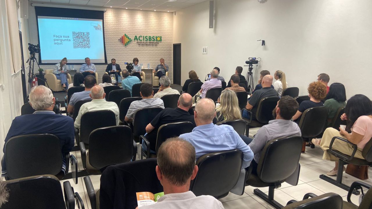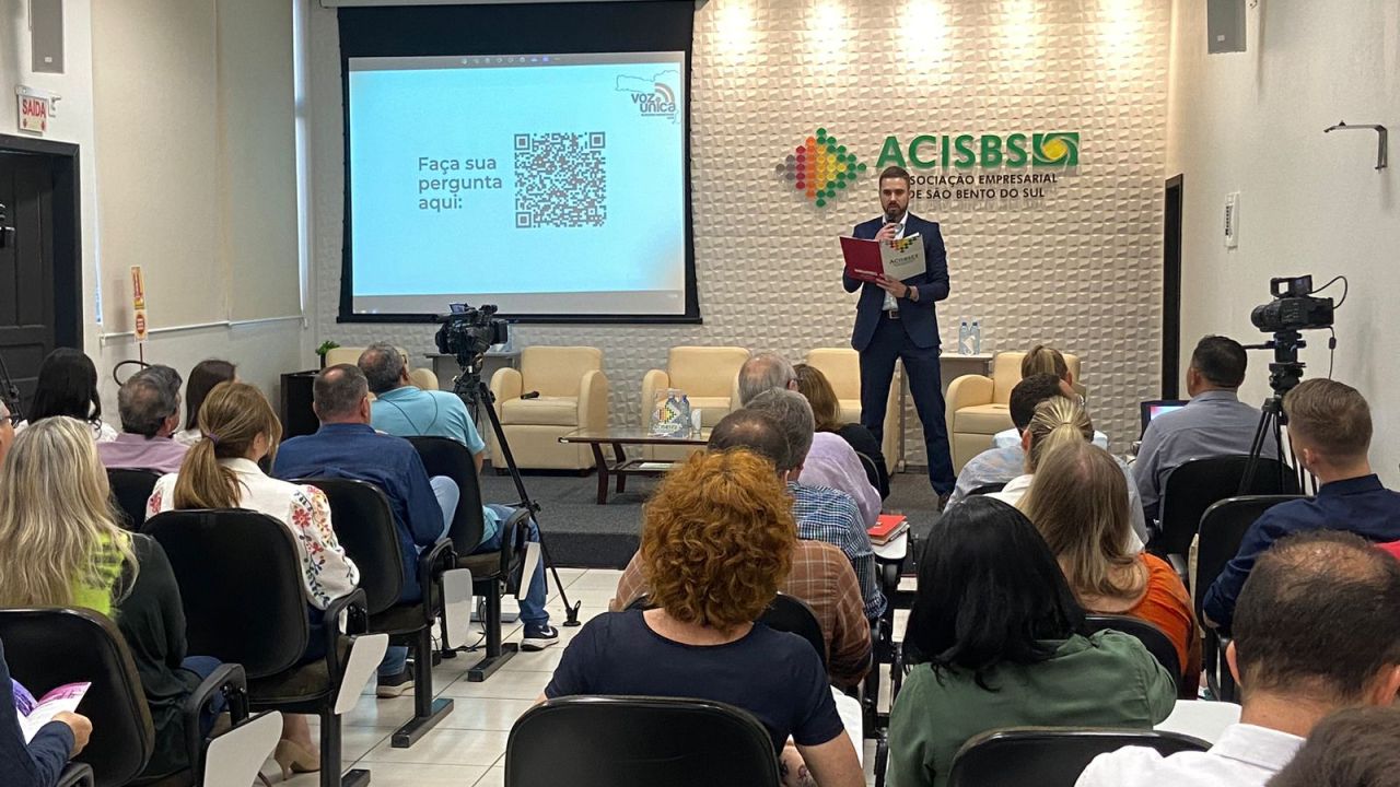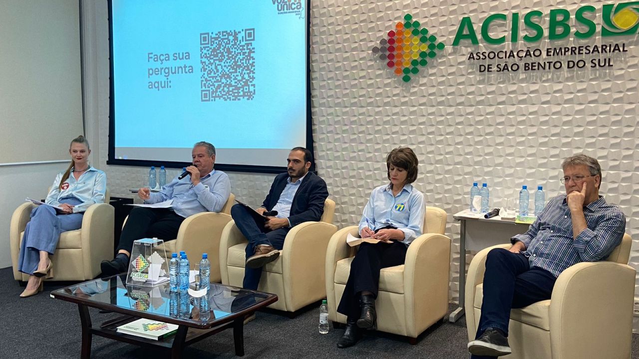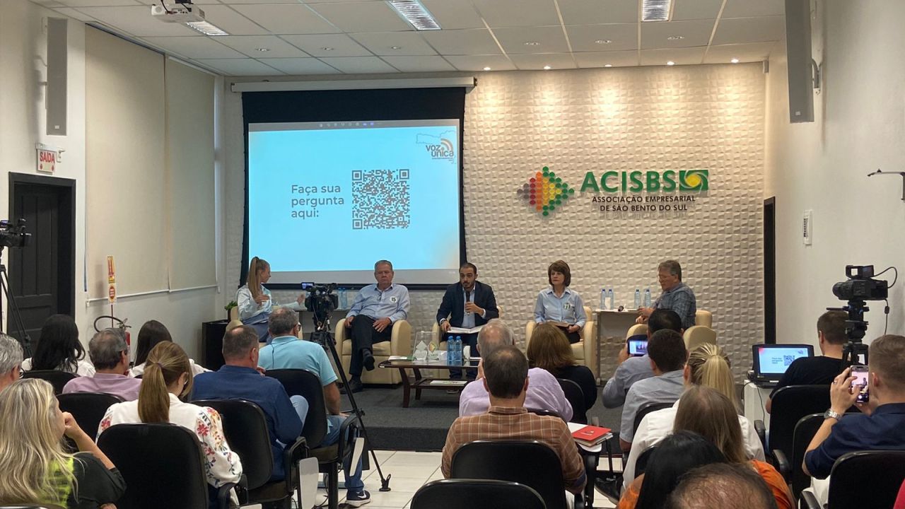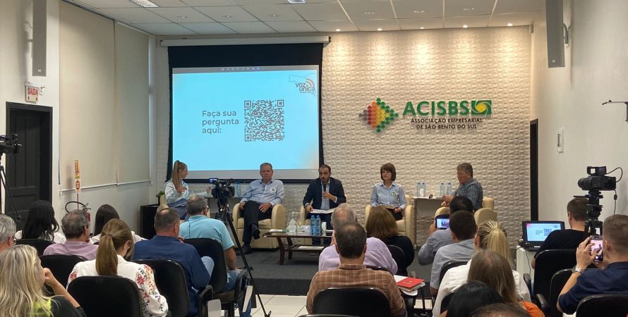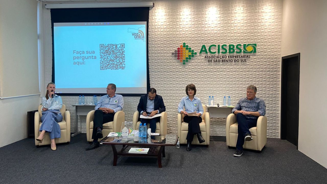Na noite desta segunda-feira (30), a Acisbs promoveu uma mesa redonda com a presença de todos os candidatos à prefeitura de São Bento do Sul. Os participantes, Antonio Joaquim Tomazini Filho (Partido Liberal – PL), Jaciara Machuga (Partido dos Trabalhadores – PT), Luiz Alberto Sieves (Movimento Democrático Brasileiro – MDB) e Rosemari Cândido (Partido Progressistas – PP), tiveram a chance de apresentar seus projetos para o futuro de São Bento do Sul e discutir a cartilha “Voz Única”, entregue a eles no dia 26 de agosto.