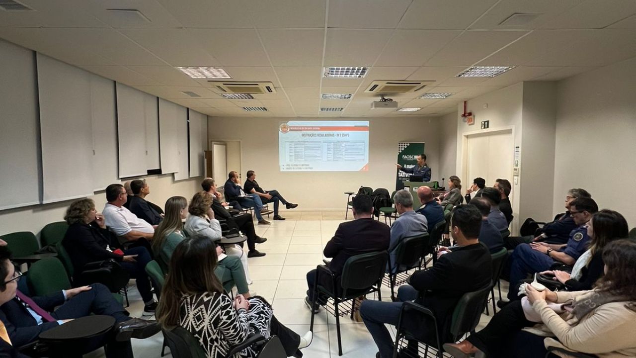 O Porto de Itapoá foi o local escolhido para a Reunião Plenária Norte da Federação das Associações Empresariais de Santa Catarina (Facisc), nesta terça-feira (23). Uma das pautas do encontro, que contou com presidentes e diretores de associações da região, foi a segurança pública. Para falar sobre o assunto, foram convidados o prefeito municipal, Jeferson Garcia, e autoridades como o secretário de estado da Segurança Pública, coronel Flávio Rogério Graff, o comandante do Corpo de Bombeiros Militar de SC, coronel Fabiano Bastos das Neves, o comandante Regional de Polícia Militar, coronel Marcio Leandro Reisdorfer, e o diretor de Polícia Civil do Litoral, delegado Fábio Osório e o comandante da 4ª Companhia do 5º CRPM, Capitão Richardson Lima.