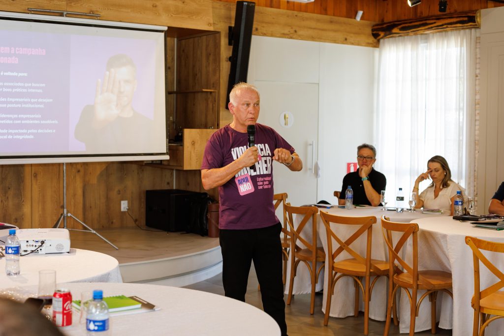 Outro destaque da reunião foi o alinhamento das próximas ações da Campanha Aqui Não, apresentada pelo vice-presidente César Smielevski. A iniciativa reforça o movimento construído pela FACISC em parceria com associações empresariais e empresas catarinenses para promover ambientes de trabalho mais seguros, éticos e respeitosos, com tolerância zero à violência contra a mulher.